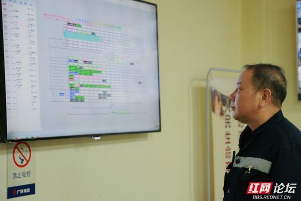 “除夕夜列车运行图调整频繁,机车周转必须分秒必争。”张德华解释道。整备车间承担着机车检修、保养、调试等任务,每一台机车的“健康”都关系着春运列车的安全准点。面对当晚整备场内机车的整备任务,这位31年工龄的老调度目光如炬:“机车的‘年夜饭’,一秒钟也马虎不得。” 张德华穿梭在各个班组之间,对讲机不离手,时刻关注着现场的每一个动态。“检验组,13道机车制动机数据合格了吗?注意细节,特别是历史故障要查看。”“一体化组,12道机车走行部分检查完了吗?”“牵车组,10道机车已整备完毕,准备牵出整备棚。”他有条不紊地指挥着,每一道指令都清晰而有力,将整备工作协调得顺畅无比。 整备场大厅的电脑界面上,密密麻麻写满了当天的工作计划。张德华时不时会走过去,对照着现场的情况,仔细核对交班本上的注意事项。“调度不是动动嘴皮子,得懂现场、算得准、压得住茬。”他的眼神坚定而专注,不放过任何一个可能影响列车正点运行的细节。遇到突发状况,他总能迅速做出判断,协调各方解决问题。2024年春运,一场暴雪导致多台机车受电弓结冰,也是张德华协调各班组、热滑、除冰多组联动,保证了机车的准点出库。